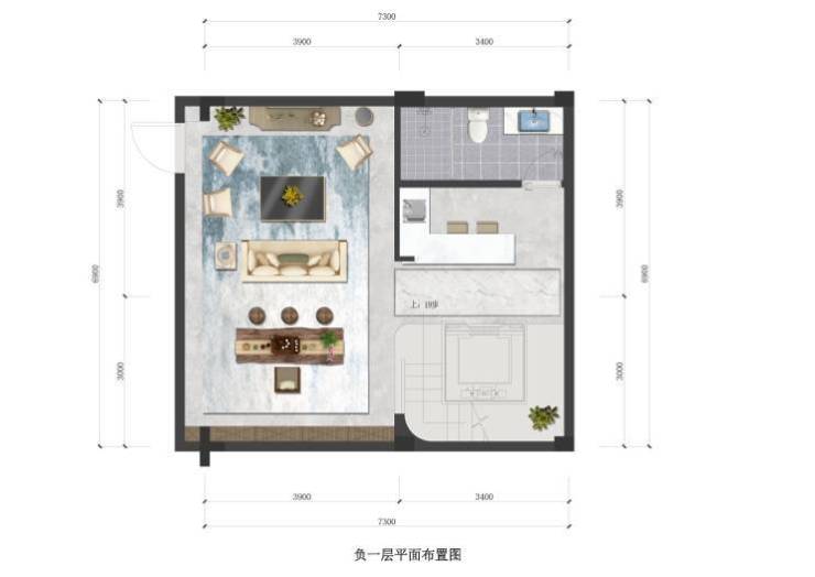 ● 约5.6米层高,可设夹层,布置静幽茶室、地下会客厅、保姆房