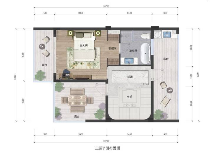 ● 全功能主人层设计,10.7米大开间豪华套房布局,独享尊贵