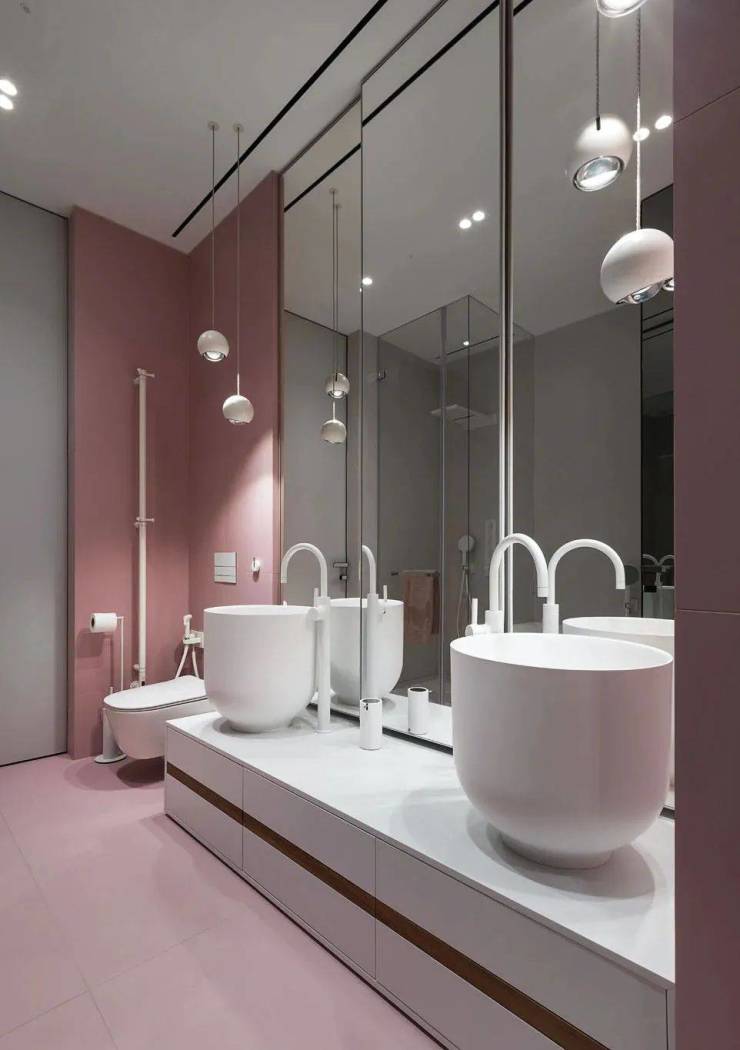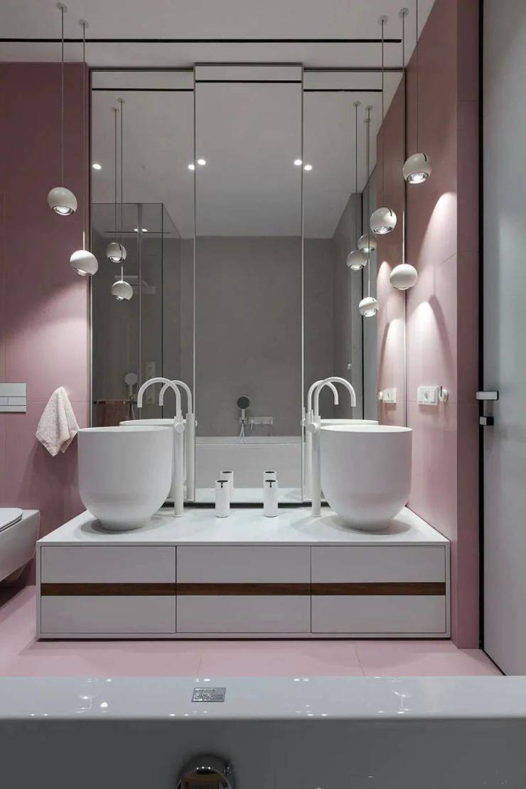 少女感爆棚的粉色卫生间设计,粉色与白色搭配,给人非常柔软的感觉,一眼看过去就让人舒服与放松心灵的感觉。