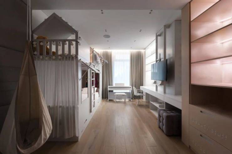 女儿房淡粉色装饰,为孩童勾勒出一片温柔灵动的童趣世界,营造出细腻而活泼的情绪氛围。