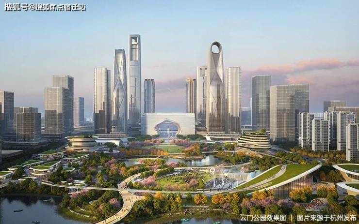云门公园(在建中)占地约100公顷,约等于钱江世纪城公园和运河亚运公园之和。南区串联起了文化谷、乐潮谷、创智谷等绿色生态中轴线。北区则是体育公园、科创会议中心等建筑群,将会成为杭州又一综合性地标。