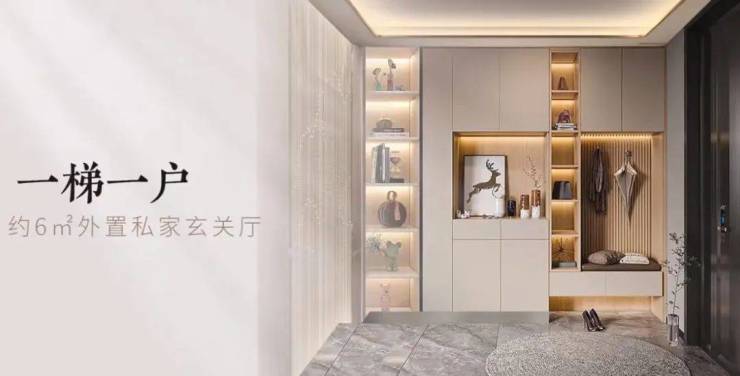 入户大堂的空间尺度更领先市面,2.7米净高+19-24㎡面积,比起普通住宅仅5-6㎡的空间体验,可谓是大幅提升。