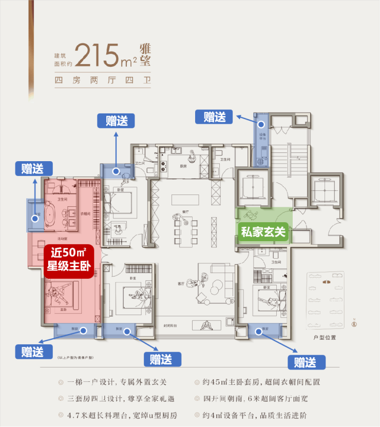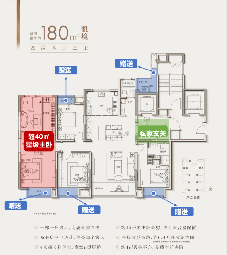 包括市面上不常见的一梯一户、超配设备平台、双套房三卫生间设计等等,从空间到功能,堪称昆山大平层里的教科书。