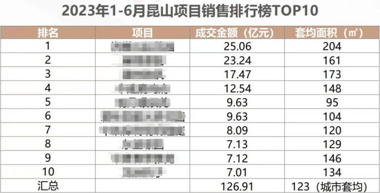 据克而瑞数据统计,23年上半年1-6月昆山住宅销售排行榜TOP10中,80%的项目都是改善盘,城市套均面积高达123㎡,昆山的改善趋势越来越明显。