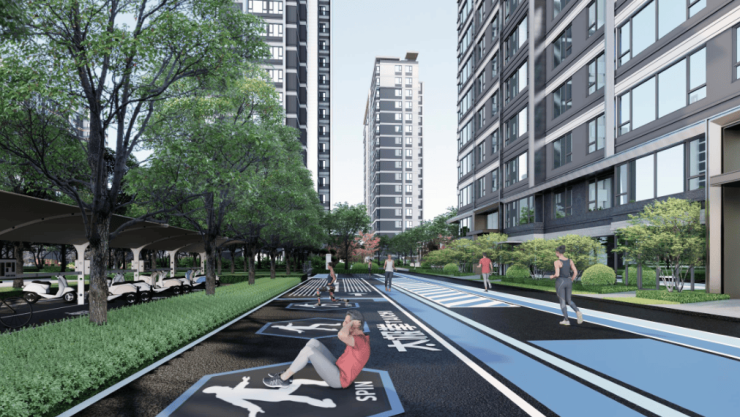 比如社区全长500m运动环道,结合青老年锻炼空间与跑步环道,打造活力无限的户外活动空间。