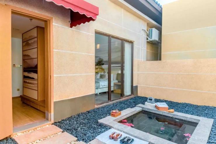房间面积:59m²,配套设施:儿童榻榻米/沙发/花园私密泡池/和服体验