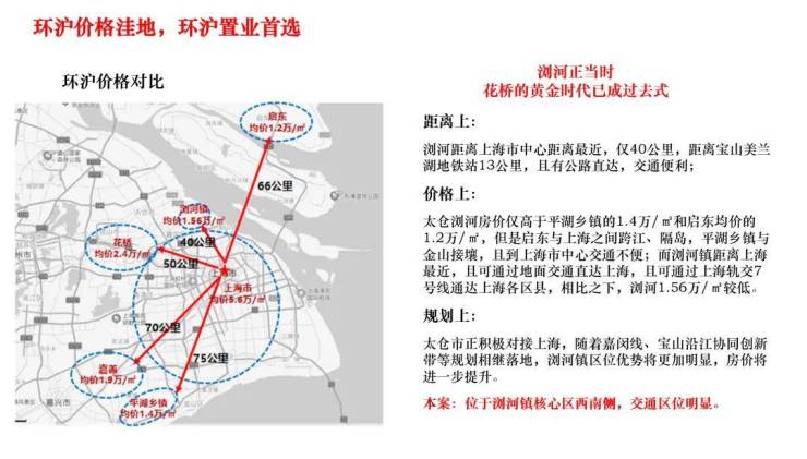 太仓南临上海,与宝山、嘉定仅一桥 之隔,作为上海沿江、沿海发展“出沪第一站”,承接上海中心城市龙头带头作用,未来将打造滨江临沪国际化大都市,太仓于沪太双城中轴之上,构筑“一心两湖三环四园”城市生态体系;浏河作为长江口度假区核心区域,紧靠太仓三大天然氧吧之一滨江湿地公园,生态条件得天独厚、养生环境首屈一指,是宜居、 宜游、宜业的花园城市。