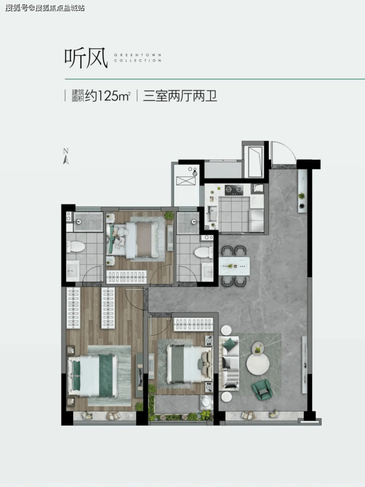 125㎡和143㎡这两个户型三开间朝南,竖厅设计,是目前市面上比较常见的功能三房、四房,功能区齐全但各个尺寸空间格局较小。143㎡玄关入户正对餐桌,个人感觉不太舒服