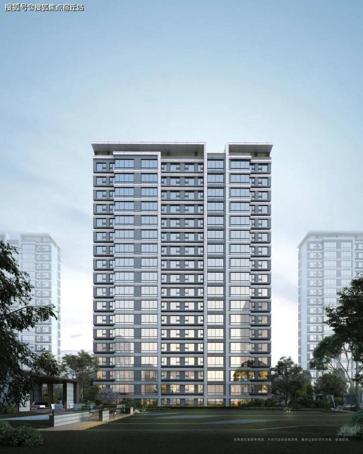 建筑立面,「深业·深安上居」整体以简约风格的线条,搭配玻璃和米白及深灰色的材质涂装,营造出光影般颜值框架的同时,让建筑成为区域内历久弥新的品质标杆。