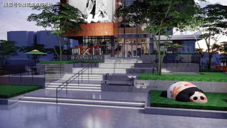 项目外立面设计以现代时尚的元素展现,采用较多悬挑造型嵌入,通过滨水平台、艺术市集、休闲驿站、跃动广场等多个功能区,将自然景观与江南水乡人文融入其中,实现生活剧场+滨水艺术街区+生活市集的独创设计,创建一个有温度感的治愈系城市客厅。