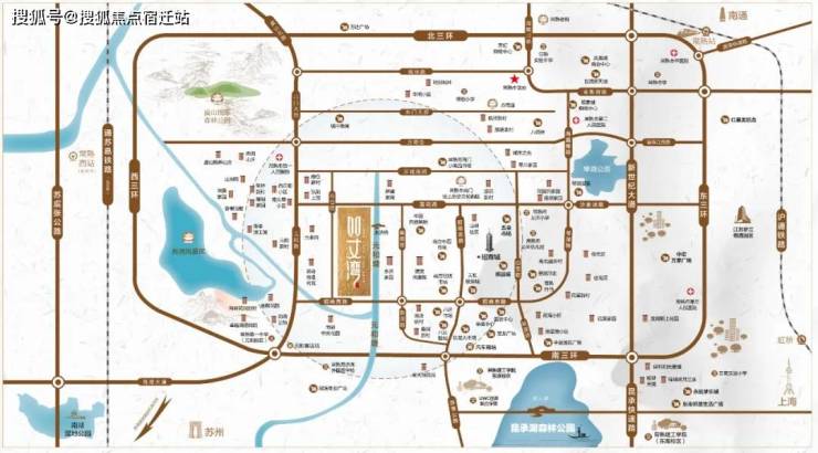 项目所在的元和塘——永济桥节点,向北沿元和塘河流连通常熟老粮库文创园区、南门坛上历史文化街区、护城河等核心景观,以吴文化为纽带,元和塘为载体精心打造,形成文化、商业、旅游资源的大贯穿。