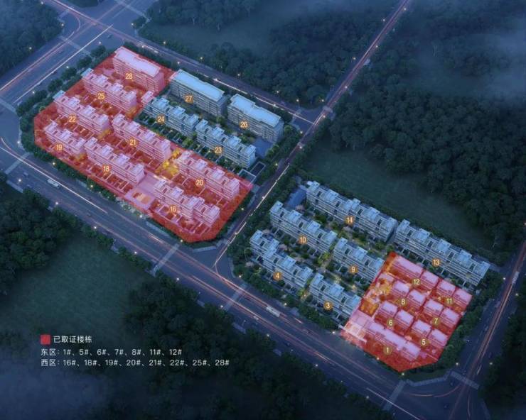 已取证楼栋:东区:1#、5#、6#、7#、8#、11#、12#;西区:16#、18#、19#、20#、21#、22#、25#、28#