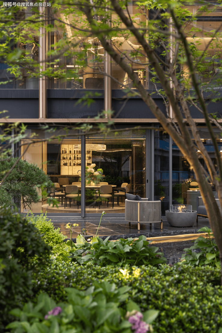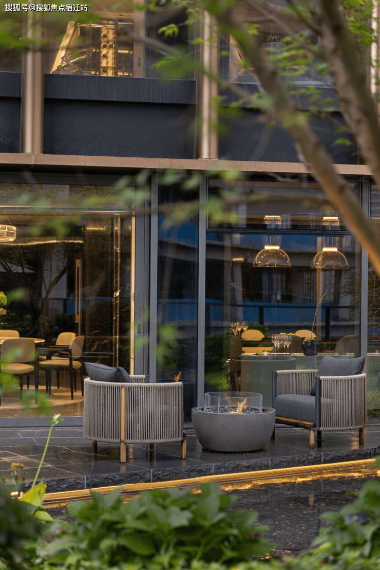 庭院犹如一片静谧的绿洲,在城市高楼间开辟出一隅难得的闲适,绿意掩映间,将杭州之门嵌入日常。环形座椅围炉而设,烈焰跃动中升腾出微暖的光影。这片庭院,是城市与自然在时光深处的默契回响。