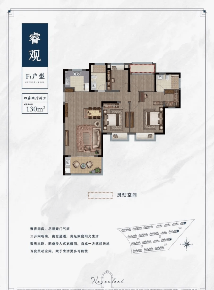 126㎡的四房设计可以说相当宽敞,无论是餐厅还是主次卧,都真正做到了舒适和实用的统一!这样好的户型不止收纳功能强,采光通风好,还可以满足不同家庭对于居住的需求!