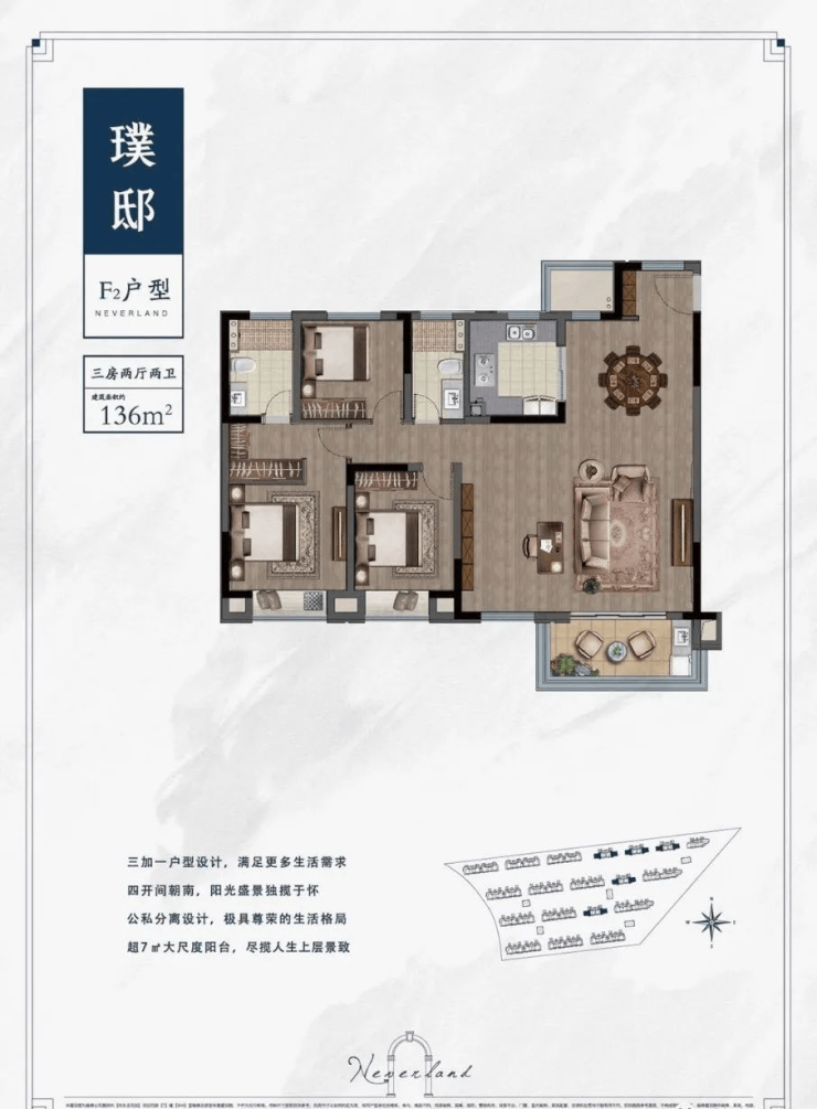 3+1的户型设计,可以满足更多家庭的居住需求,超7㎡的阳台,尽享社区绿色风景~