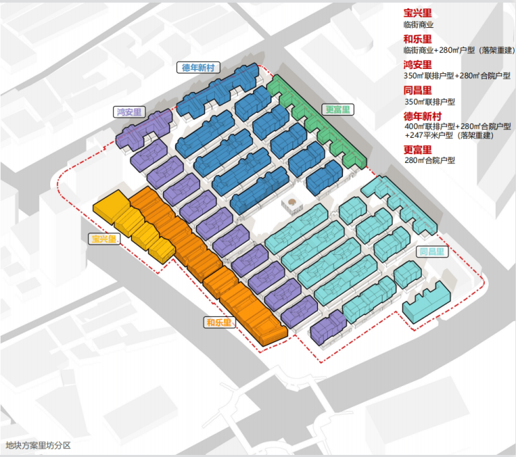 【弘安里】地块总占地面积约3.7万㎡,容积率仅1.1,地上住宅面积约4.1万㎡,建筑限高仅10米。近日项目规划设计方案公示:项目将建2-3层的别墅及部分配套用房。