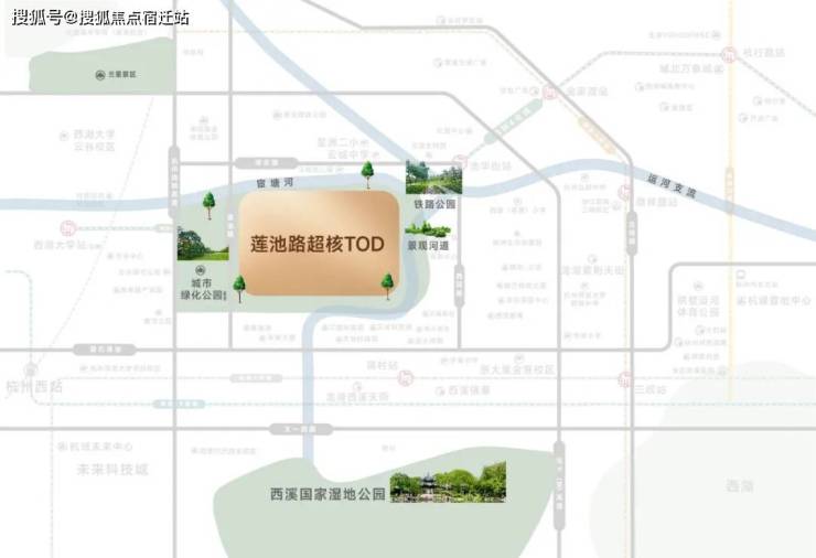 莲池路超核TOD—润启未来之城立于西湖新中心之上,完美承接西湖区“稀缺自然人文资源 + 顶级城市配套 + 塔尖教育资源”,同时接轨城西科创大走廊“世界级产业集群”的强大引擎动能价值,共同构成了“宜居+宜业”价值高地。