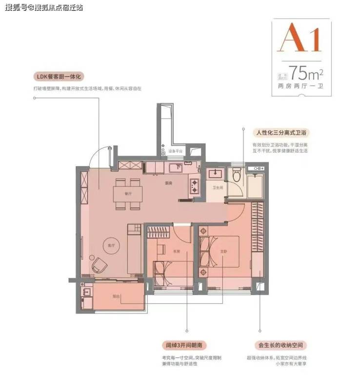 此外,还有建面约75㎡2房1卫,总价约271万起。