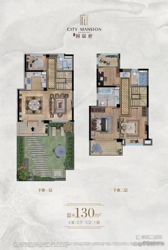 下叠1-2层,有花园和地下室,建面约130平表价460-518万,实际使用面积约260平。