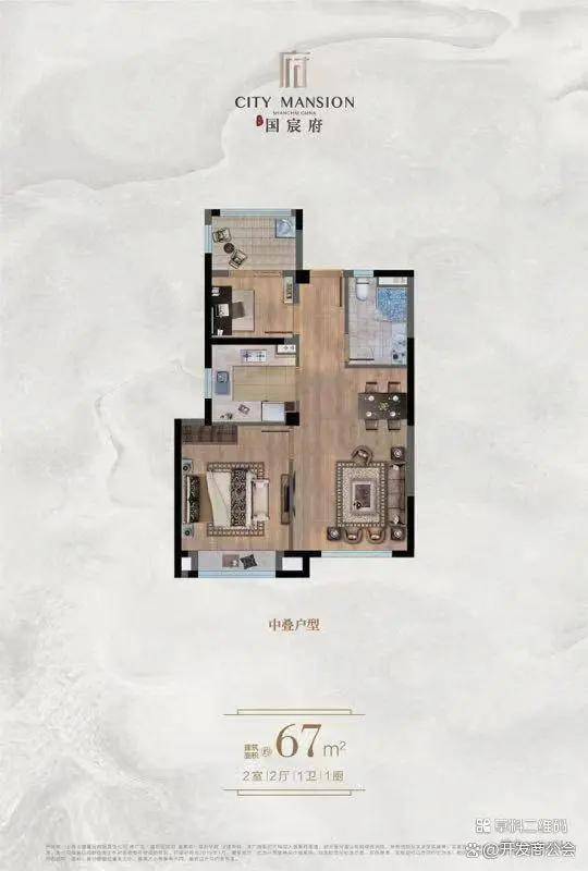 中叠平层,建面约67平,表价240-285万