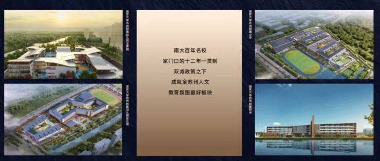 2⃣南大帝国 优质教育 南京大学苏州校区占地2000亩,总投资超百亿。预计2021年9月份就会正式招生,2022年9月完成首期进驻入学。重点打造五大学科群、十大学院、四大平台和七个重点实验室,将拥有一支1000人的高水平教师队伍,规划涵盖本硕博各类层次的办学规模2万人,其中本科生15000人、研究生3500人、国际学院1500人。未来在南大苏州校区和高新产业园带动下,后期将促进更多优质学校落定建成。项目一路之隔为南大附属幼儿园昆仑园、南大附属第一小学、南大附属初中等高阶、全维度教育资源,敬献城市高净值人群。
