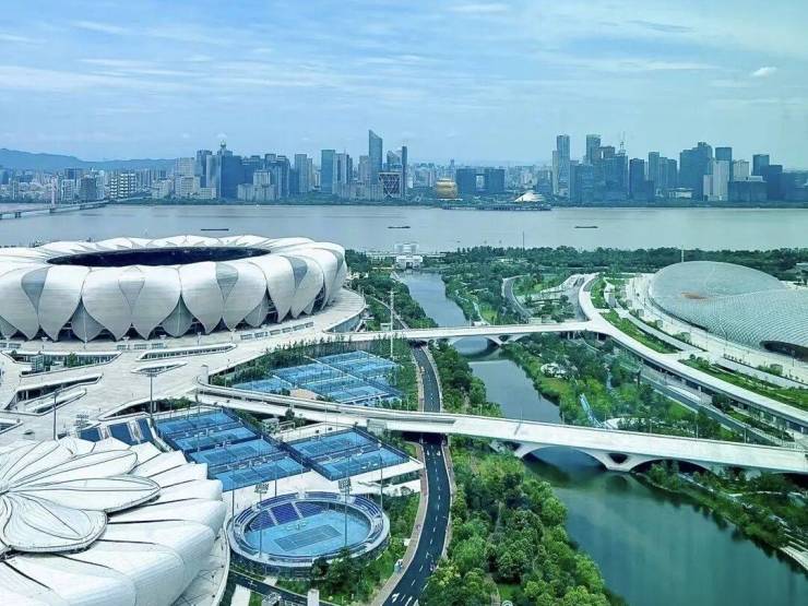 杭州之门由国际知名建筑设计事务所SOM亲自操刀,以杭州拼音首字母“H”为设计蓝本,并与传统文化结合(外立面形似龙鳞),打造杭州城市新名片。