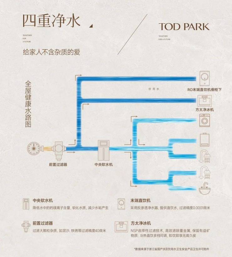 ▶四重净水 前置过滤器、中央软水、末端直饮水、方太直饮制冰机