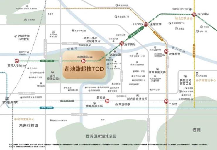 莲池路超核TOD—润启未来之城立于西湖新中心之上,完美承接西湖区“稀缺自然人文资源 + 顶级城市配套 + 塔尖教育资源”,同时接轨城西科创大走廊“世界级产业集群”的强大引擎动能价值,共同构成了“宜居+宜业”价值高地。