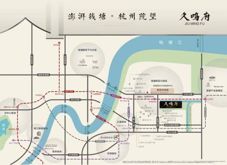 项目占位钱塘新区“智慧之城”核芯,毗邻行政服务中心,坐享上百个世界500强项目落地红利。周边地铁8号线新湾路站约500米已通车,一站直达规划钱塘高铁站,7号线双线换乘,30分钟通达奥体、钱江新城;“五港合一”交通枢纽串联萧山机场、高速路网,实现沪杭甬1小时生活圈。