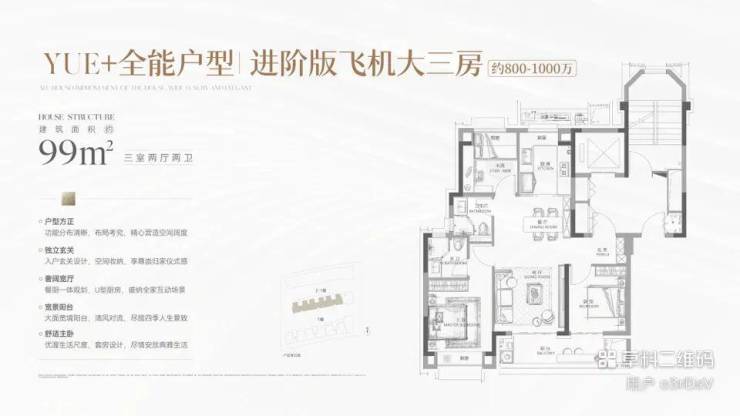 在深度洞察人居需求之上,越秀杨浦天玥定制建面约99㎡全龄进阶三房空间、建面约124㎡超改善电梯洋房两大户型,全功能空间之上,以极致收纳、轩阔尺度等优势,写意四季舒居生活