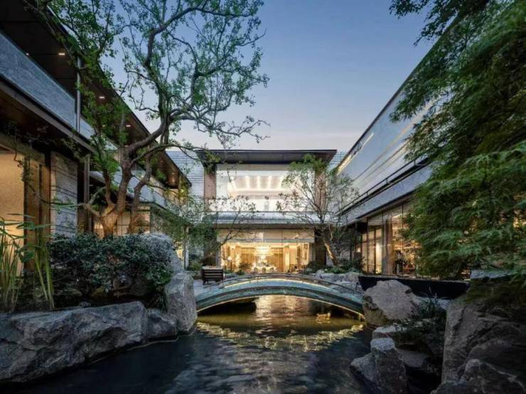 项目承袭中式院落精髓,打造“九进归家礼序”。复刻《溪山清远图》,从东侧“四水归堂”之门,经下沉庭院,终抵宅前巷景之静,九重境界层层递进,一步一景,让每日归家皆成一场穿越诗画的漫步旅程。