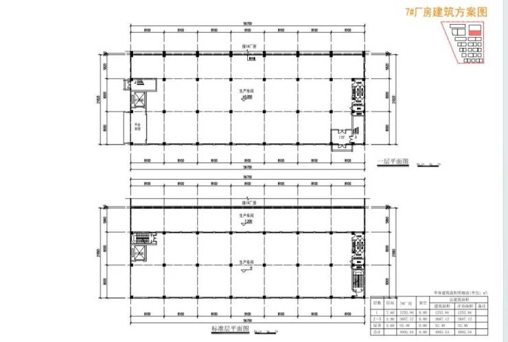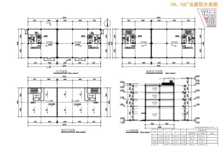 项目共计27幢厂房,其中:9层厂房一幢1#9063平方米,单层面积910平方米,6层厂房2#一幢,总建筑面积7400平方米,5层厂房3幢,其中:3#厂房3261平方米,6#厂房3812平方米,7#厂房4992平方米,4层厂房8幢,其中:5#厂房3329平方米,8#厂房2322平方米,9#厂房1660平方米,13#厂房1085平方米,15#厂房1603平方米,12#厂房1603平方米,11#厂房1085平方米,10#厂房1085平方米。3层厂房14幢,面积为769-1211平方米。