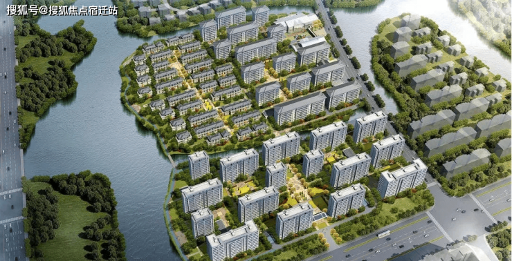 从滨河洋房望向南面的臻景洋房,视野极其开阔,哪怕是一楼、二楼采光也非常充足,等到以后水系开通,一番清理之后,便是一幅升级版绍兴枕水人家的图景。