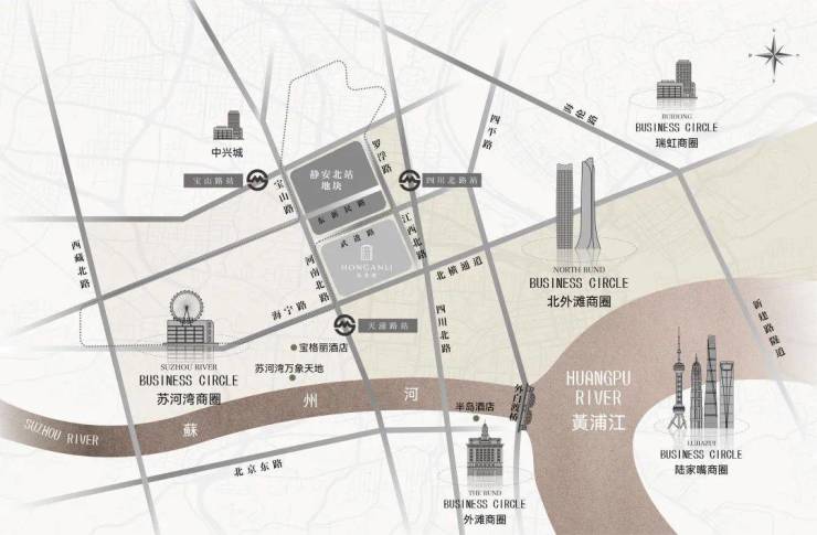商业:3公里范围内,汇聚苏河湾万象天地、北外滩商圈、瑞虹商圈、南京西路商圈、外滩商圈、陆家嘴商圈等,东南侧步行可达18街坊,西南侧在建安康苑、湾上综合体地块。