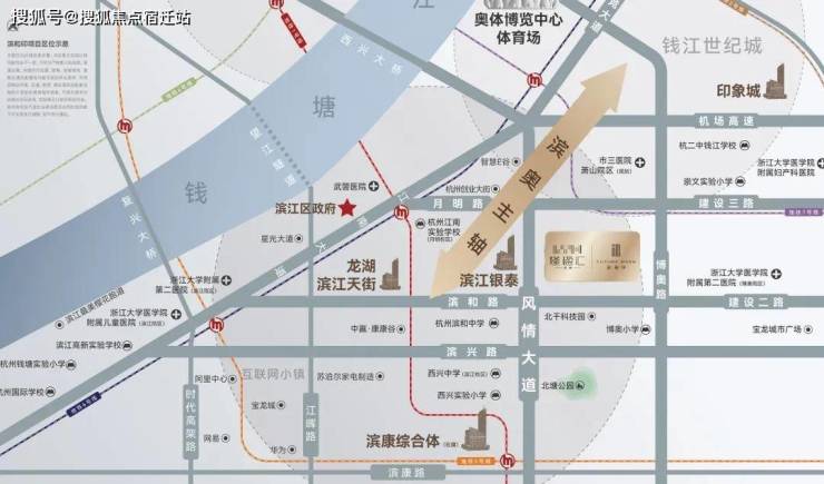 位于滨江与奥体交汇的核心板块--滨奥主轴之上,风情大道与建设二路,距离滨江核心区直线距离约1.9公里,距离奥体中心直线距离约2.5公里。本案方圆3公里范围,几乎同享滨江与奥体所有核心配套,如此得天独厚的地理位置,不仅完全满足滨江高端改善置业需求,也是目前杭州江南岸唯一一个,可同享滨奥核心资源的板块。