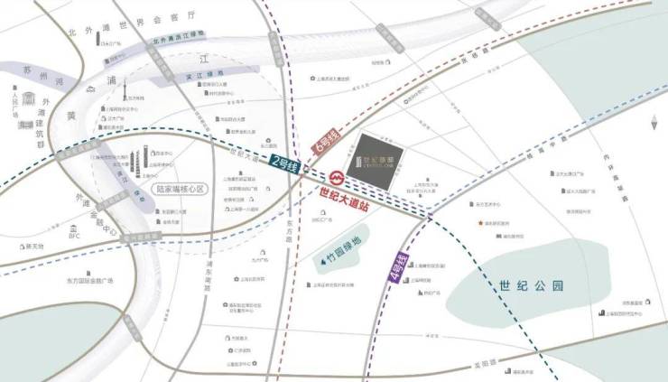 直线距离约466米,约8万方竹园绿地;世纪公园、陆家嘴中心绿地、浦东滨江步道等
