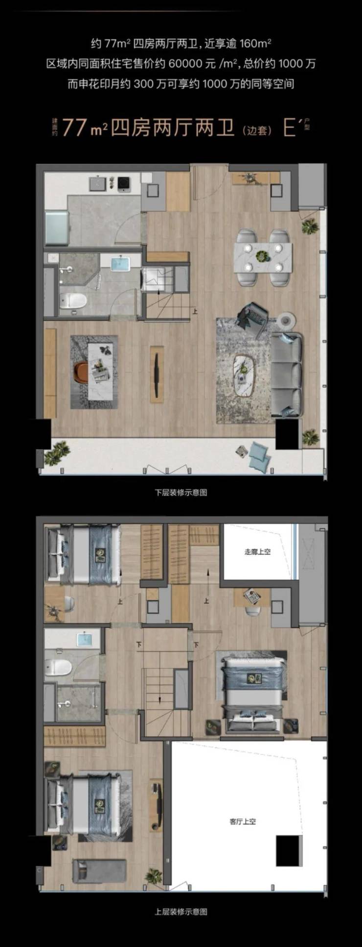杭州申花芯•三地铁口•约33-78m²4.79米精装现房公寓|申花印月