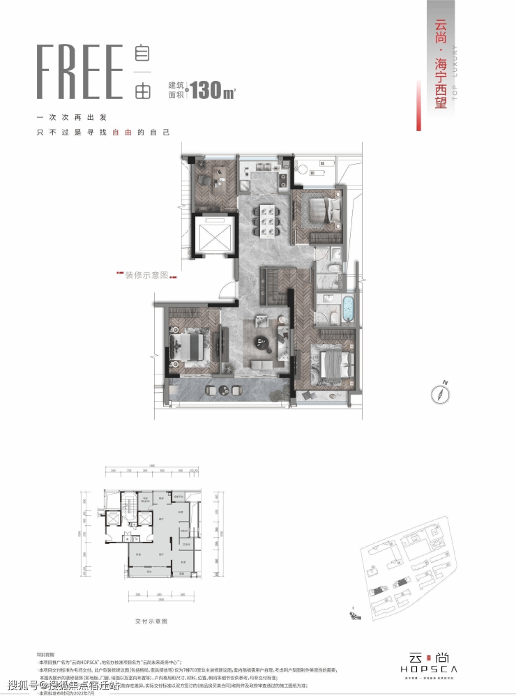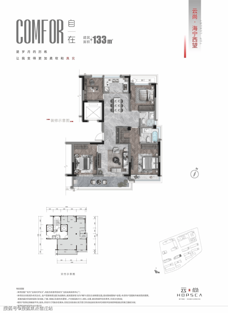 云尚HOPSCA从来不是一所房子那样简单,匠心精琢的建筑面积约130㎡-330㎡奢适大宅、建筑面积约210-270㎡精工光幕大平层、建筑面积约400-700㎡商墅,以「生产力创新、生态链赋能、生意场升级、生活圈进阶」四重赋能,在海宁融杭桥头堡——海宁城西,领衔海宁新生代豪宅,致敬城市新贵阶层,筑写自己独特的塔尖圈层。