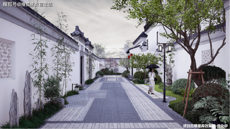 园区景观整体规划为“一带一街五园多节点”,打造以中式园林风格为特色的中央景观轴,串联山水园林造景与邻里花园,融入街巷里弄意境,步移景异、一步一景,形成生动而富有层次的中式景观体系。