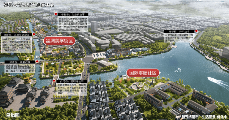“新五桥晴市”红梨片区:未来红梨片区连同盛泽老城区,打造“新五桥晴市”生活图景,片区附近规划游客中心、八大会馆组团、丝绸水路环线圆明寺码头等,构筑新庄面生态长廊,打造红梨之心最美湾区。