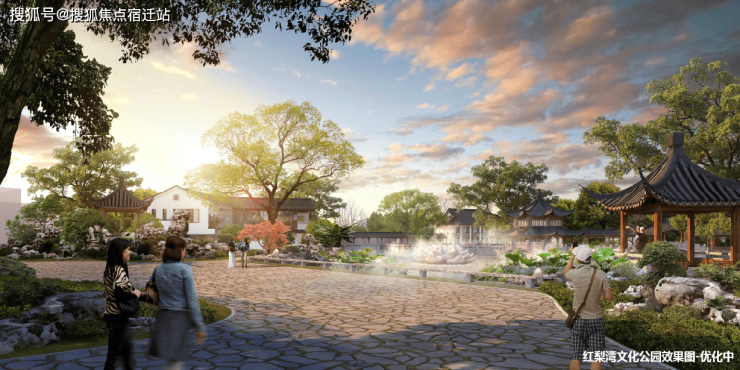 在原金牛园基础上改造,内部规划文化广场、禅茶书院、主题餐厅、中心园林、荷花池等,提升红梨片区品质生活配套,打造盛泽人文生活名片。