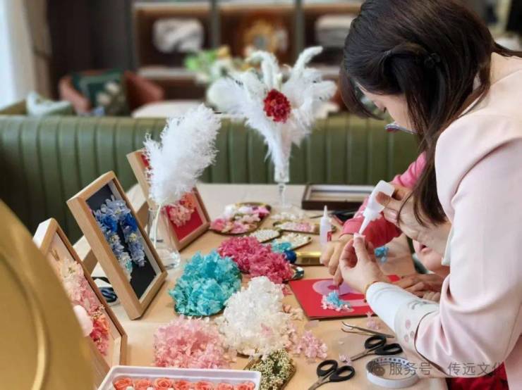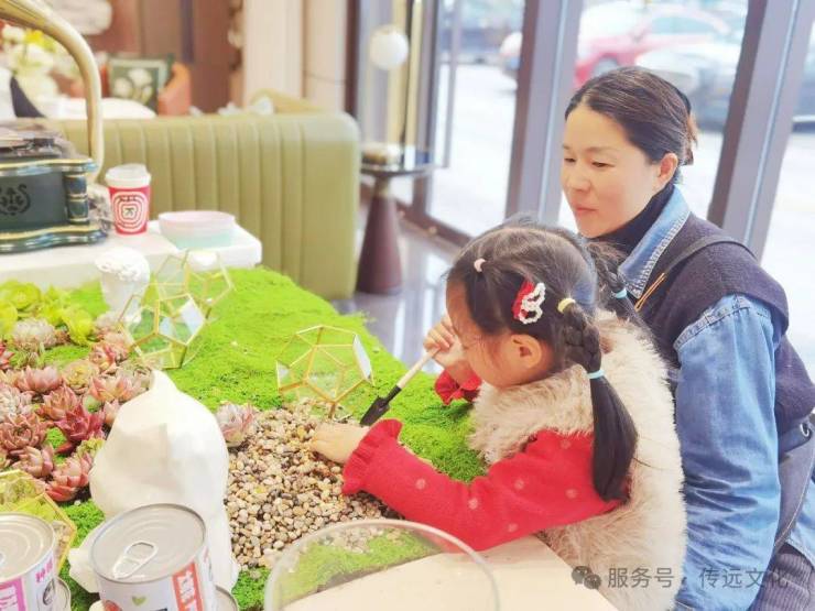 传远文化承接央企中建集团项目,在上海松江嘉利椿廷,举行多肉与仿真绿植美陈设计和数字永生花相框手工活动。