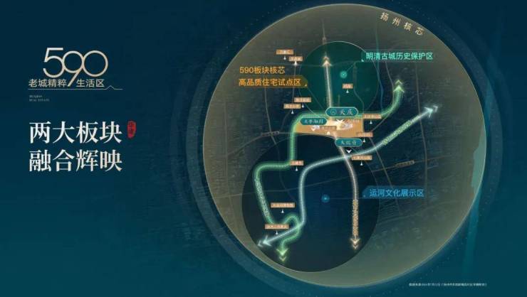 随着主城核心板块的发展与更新,一批曾经辉煌的工业、企业与厂区终是退下了历史的舞台,迎来拆迁、改造与搬迁。老城区板块格局改变,向外分化为传统文化展示区、高品质住宅试点区、运河文化展示区,590板块为传统老城衍生区域,改变现阶段主城拥堵现状,打造颐居、乐居、善居的高端住宅区域。