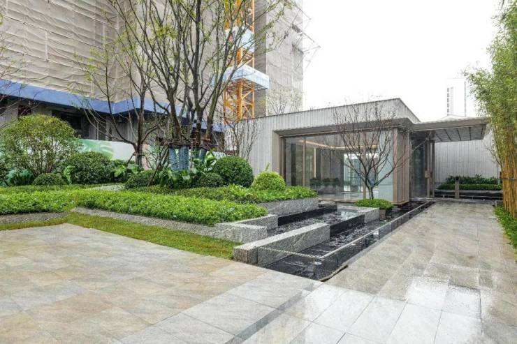 以精工迎宾大门设计,通过门头、水岸、花园等的组合,打造十字主轴的归家仪仗,形成极具品味的入户体验;并融入至臻工艺,从主入口、地库、公区、架空层打造专属的仪式感。