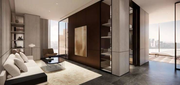 【望廷】阔厅江景宽景大宅,洞察塔尖精英心之所想,通过现代东方禅意美学的组合方式,以“东方艺术禅”为美学设计概念,将尊贵,私密,自然,精神滋养等理念贯穿所有空间,呈现出纯净高贵的意象之美。