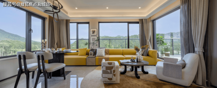 270°环幕玻璃幕墙的设计,让茶山竹海的四季更迭成为室内流动的风景,绿城精装体系以品质匠心将自然美学融入生活日常。
