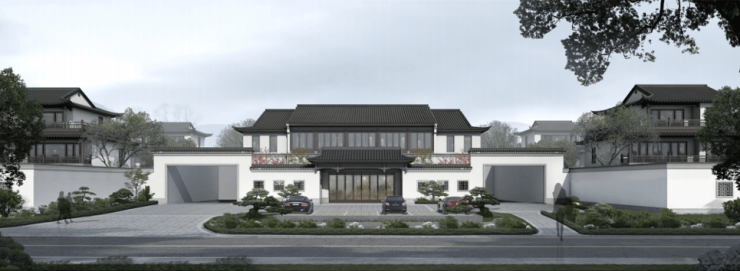 项目仅为1.1的容积率,采用了中式合院+9层洋房的组合式建筑业态,承袭东方建筑形制,以云栖十六制,复现白墙黛瓦、纵横坊巷的中式院落群,此外,开辟共享农场空间,独创宋风四重院,以山水理想式的田园生活,敬献雅士。