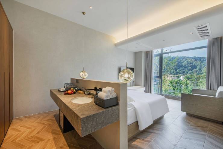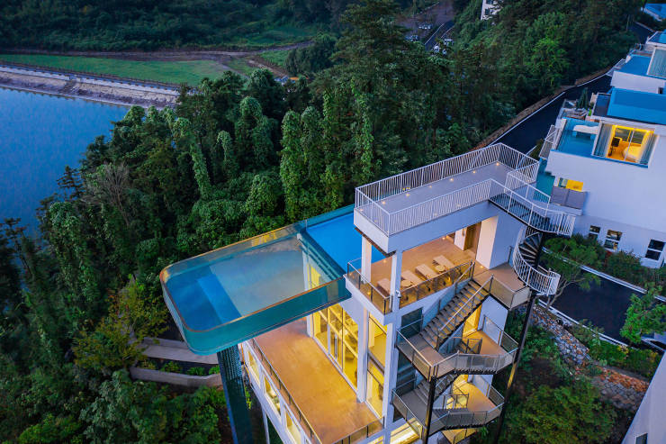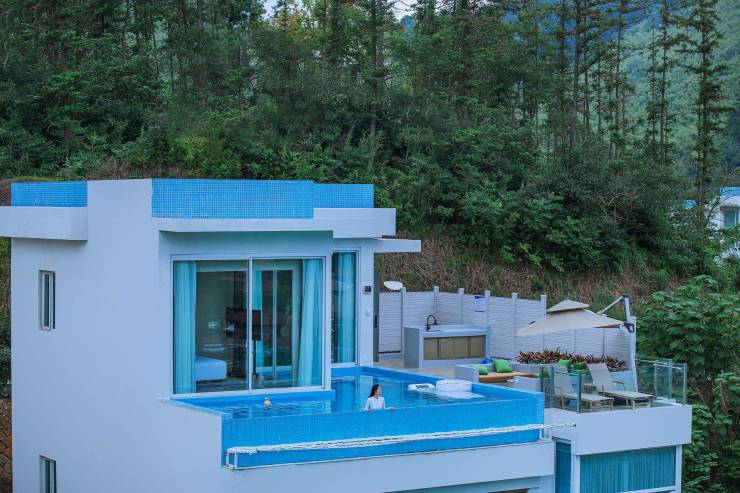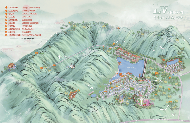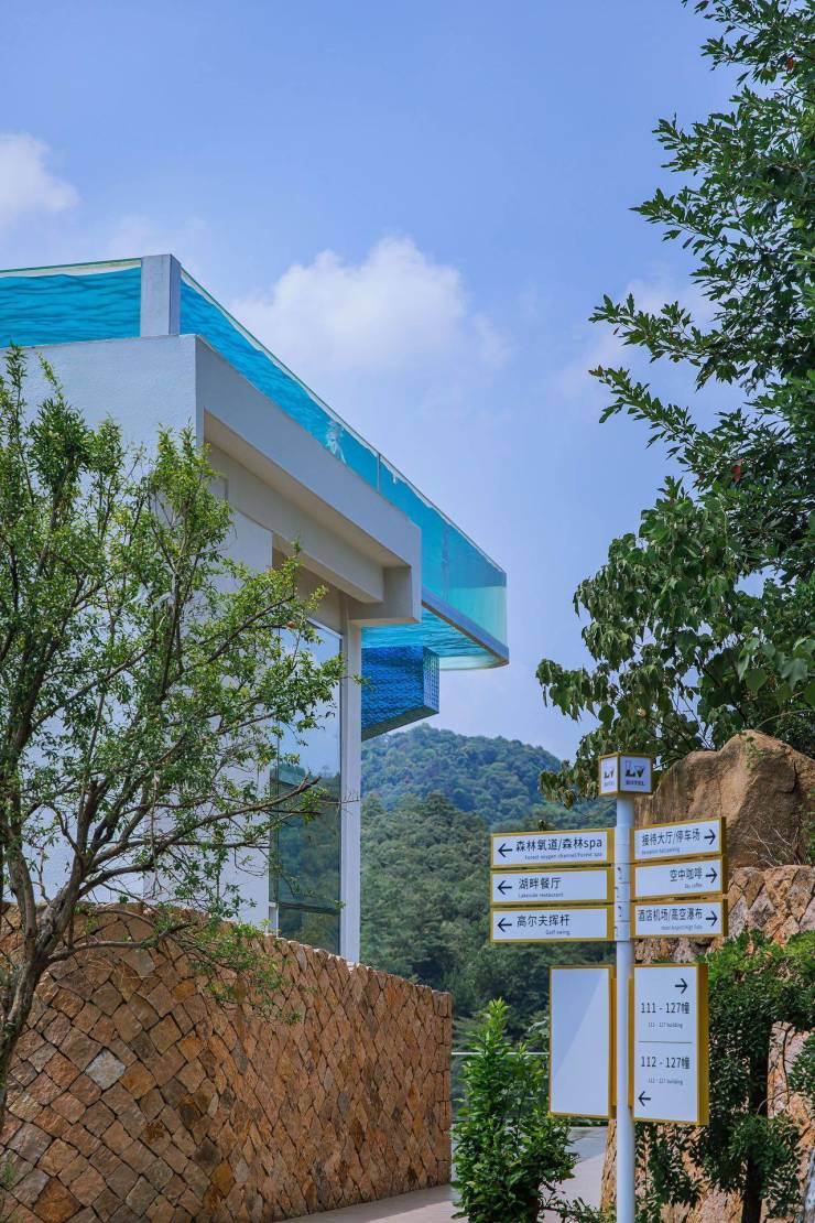 内部配套及景点:山顶树屋(度假村旅游目的地)、悬空泳池、爱心泳池、白色沙滩、玻璃栈道、高尔夫推杆、水上教堂、停机坪、高空瀑布、林中茶会。208个户外泳池(恒温服务),其中度假村巨资打造的悬空高度达33米的户外玻璃泳池是亚洲首创,徜徉其间的你可以体会到在山谷上方飞翔的感觉,悬空泳池的下方是酒吧和棋牌房,适合举办泳池派对,私人酒会等活动,此外,悬泳度假村还设有山林越野车、湖畔烧烤吧、岩壁瀑降、山林高尔夫挥杆练习场、野趣垂钓、水上桨板、水上婚礼舞台等新颖高端的设施配套。与户外生活方式多样性的结合。