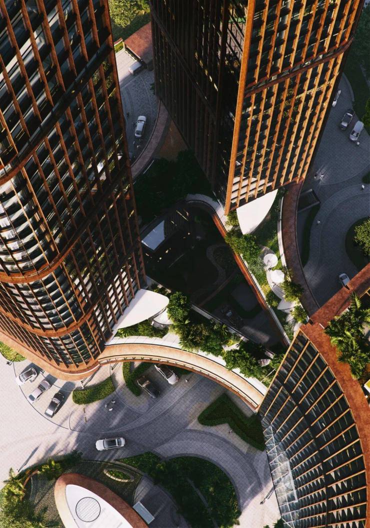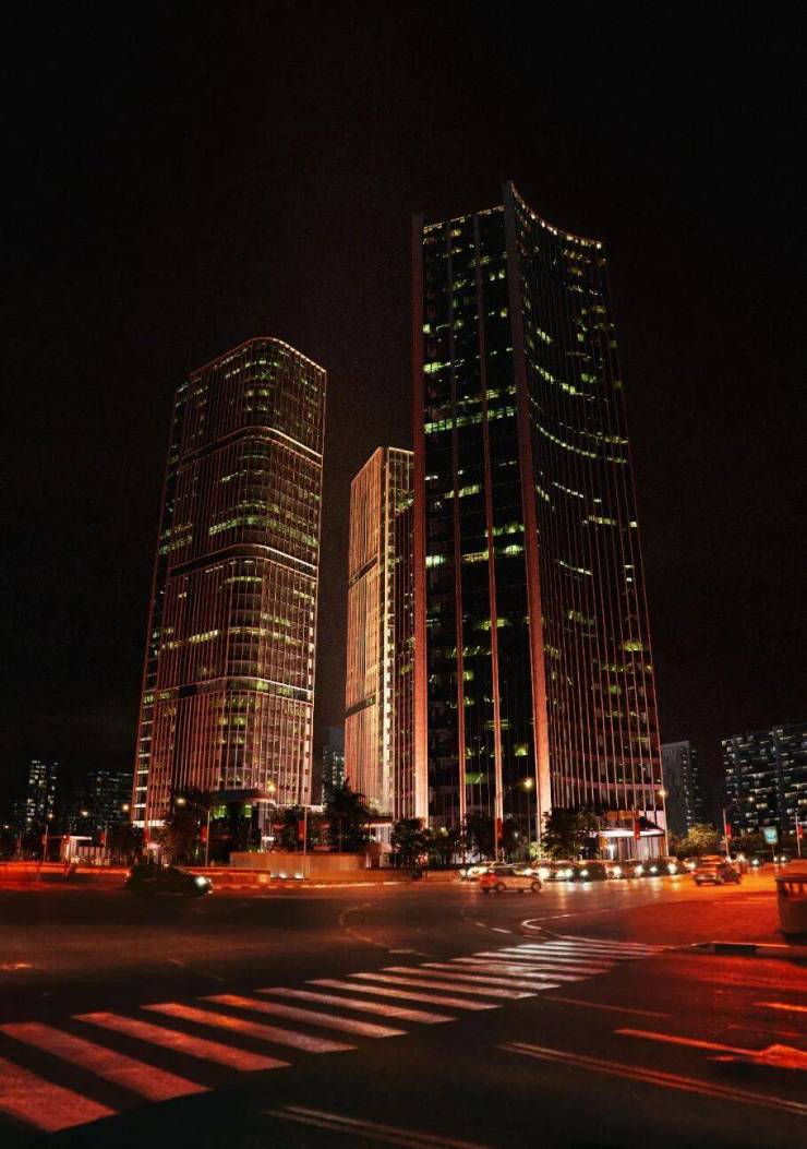 在设计「胤璞」时,初衷是实现其地标站位的同时,又能让作品和谐地融入到城市环境中。三幢相互呼应而又彼此独立的楼座,规划有总部办公与平层公馆,并配有高端餐饮、健身泳池、艺术长廊以及生活服务等业态。