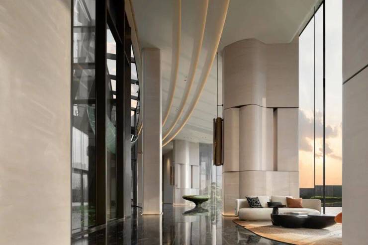 “以艺境,传意境”打造「胤璞」归家大堂,突破传统、打破庸常,以流曲之意,实现一种优雅精致的生活场景;大堂中摆设有各种艺术藏品,体现大堂的温润、安静与从容,使其既是归家大堂,又是艺术长廊。
